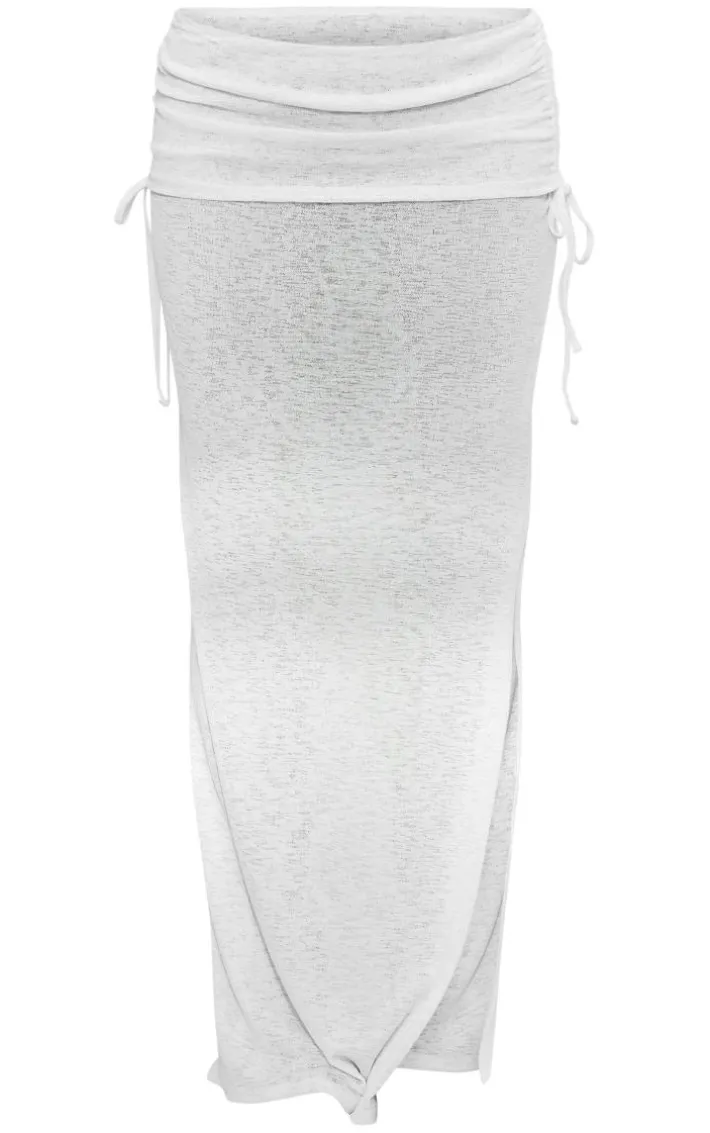 Look all kinds of chic no matter what your plans in this cream ruched side fold over maxi skirt. Brought to you in a cream hue material with a ruched side design, a fold over waistline and a maxi fit, what more could you need? Style this cream maxi skirt with a bardot top and sandals for an effortless everyday look that won’t go unnoticed.