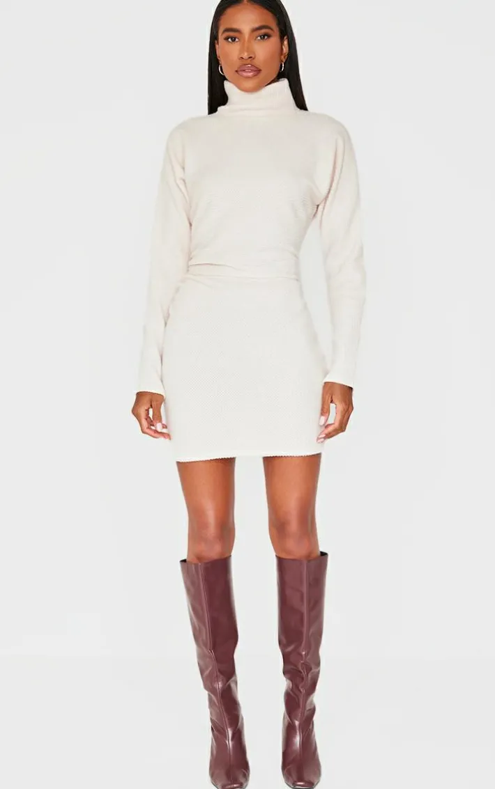 Step out in style with this cream slouchy ruched detail high neck bodycon dress. Brought to you in a versatile cream shade, with a slouchy fit, ruched detailing and high neck design, this bodycon dress is a must have in your collection. Team with some boot heels and minimal accessories to complete the look.
