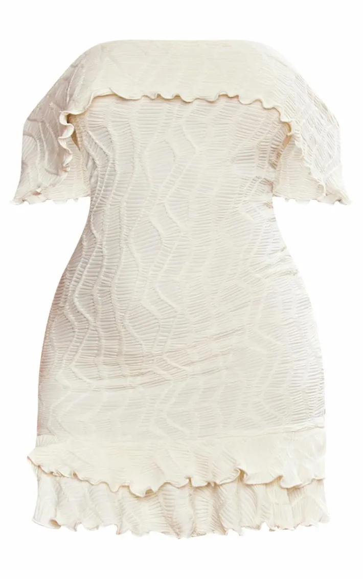 Channel all the vacay vibes in this cream textured bardot tiered shift dress. Brought to you in a cream textured material with a bardot neckline and tiered design, this shift dress is unreal. It’s a yes from us. Style this dress with black sandals, a mini bag and shades for a chic finish we can’t get enough of.