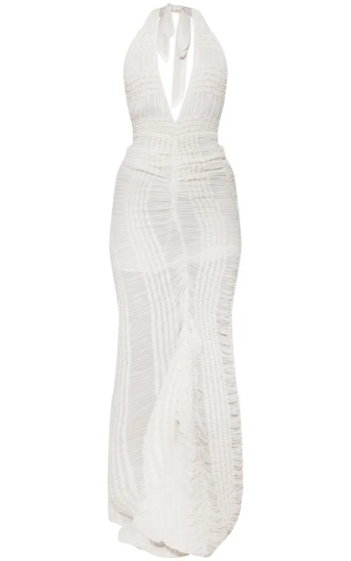 Say hello to your new season staple with this cream textured chiffon halterneck maxi dress. Brought to you in a cream textured material with a chiffon design, what more could you want? This maxi dress has a halterneck fit that is sure to banish any of your what to wear dilemmas. Style with your fave accessories for a look that has you being the topic of everyone’s conversation.