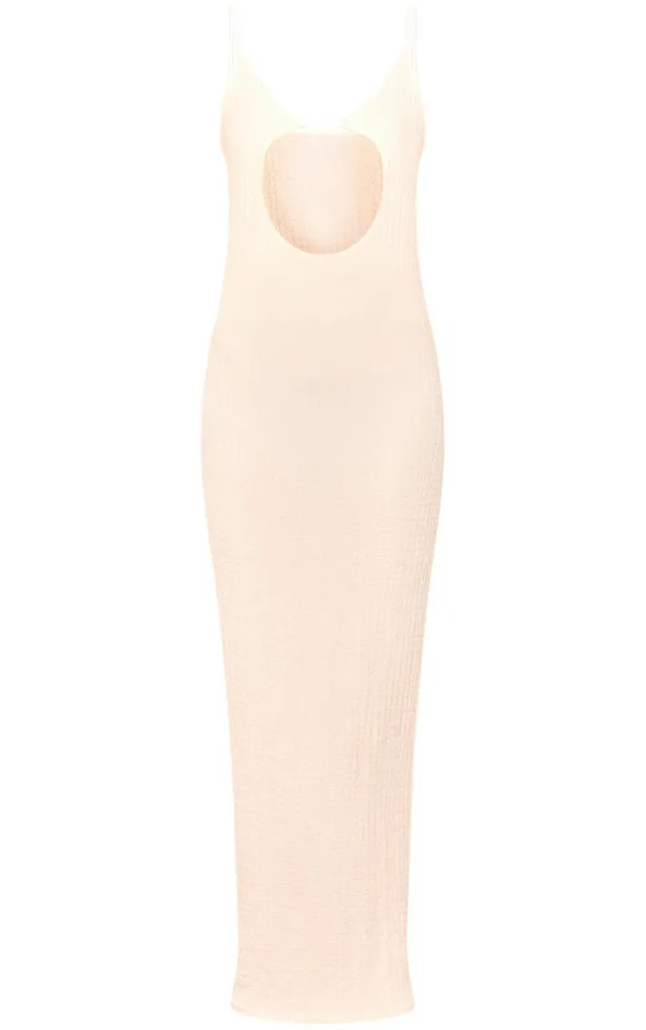 Have all eyes on you this season in this cream textured cut out detail strappy midi dress. Brought to you in a cream textured material with a cut out design and strappy detailing, how can you resist? Style this midi dress with gold heels, simple accessories and a cream mini bag for a luxe look we can’t get enough of.