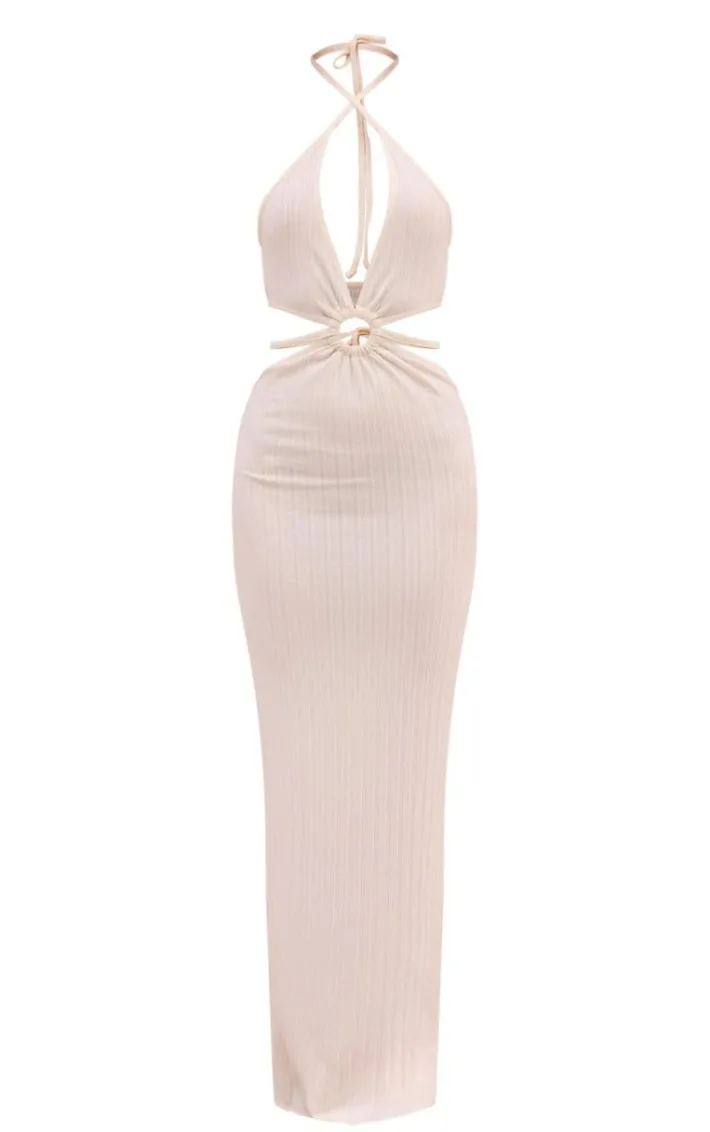 Enter the new season in style with this cream textured cut out ring detail maxi dress. Brought to you in a cream textured material with a cut out design, ring detailing and a figure-flattering maxi fit, how can you resist? Style this maxi dress with sandals and simple gold accessories for a look that is sure to make heads turn.