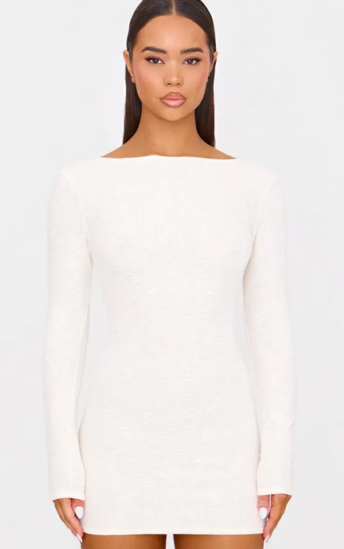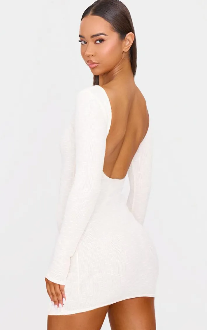 Deciding what to wear just got easier with this cream textured scoop back long sleeve bodycon dress. Brought to you in a neutral cream tone, with a luxe textured material and a scoop back design, what’s not to love? Team this with some hoop earrings and a pair of heels for a weekend-worthy finish we’re loving.
