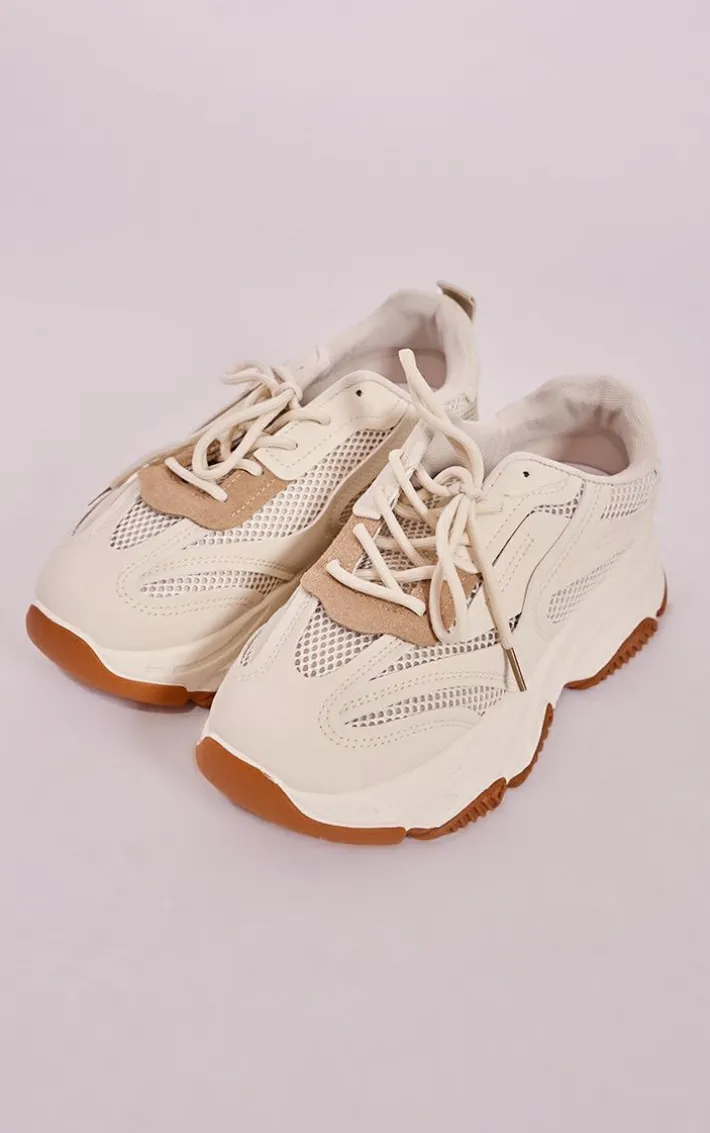 Add some fresh feels to your outfit of the day this season with these cream tonal mesh contrast ultra chunky side sneakers. Made from a cream tonal mesh material with a chunky sole design, how could you not be obsessed? Perfect for your everyday plans, these sneakers are the ultimate must-have.