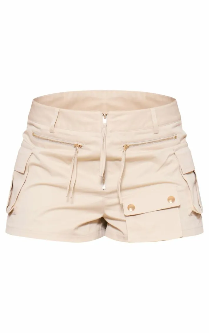 Take the stress out of weekend styling with these unreal cream woven cargo zip front hot pants. Brought to you in a cream woven material with a cargo design and a zip front, you really can’t go wrong with these hot pants. Team with some court heels, your fave bag and the matching top for a look that will have eyes on you for all the right reasons.