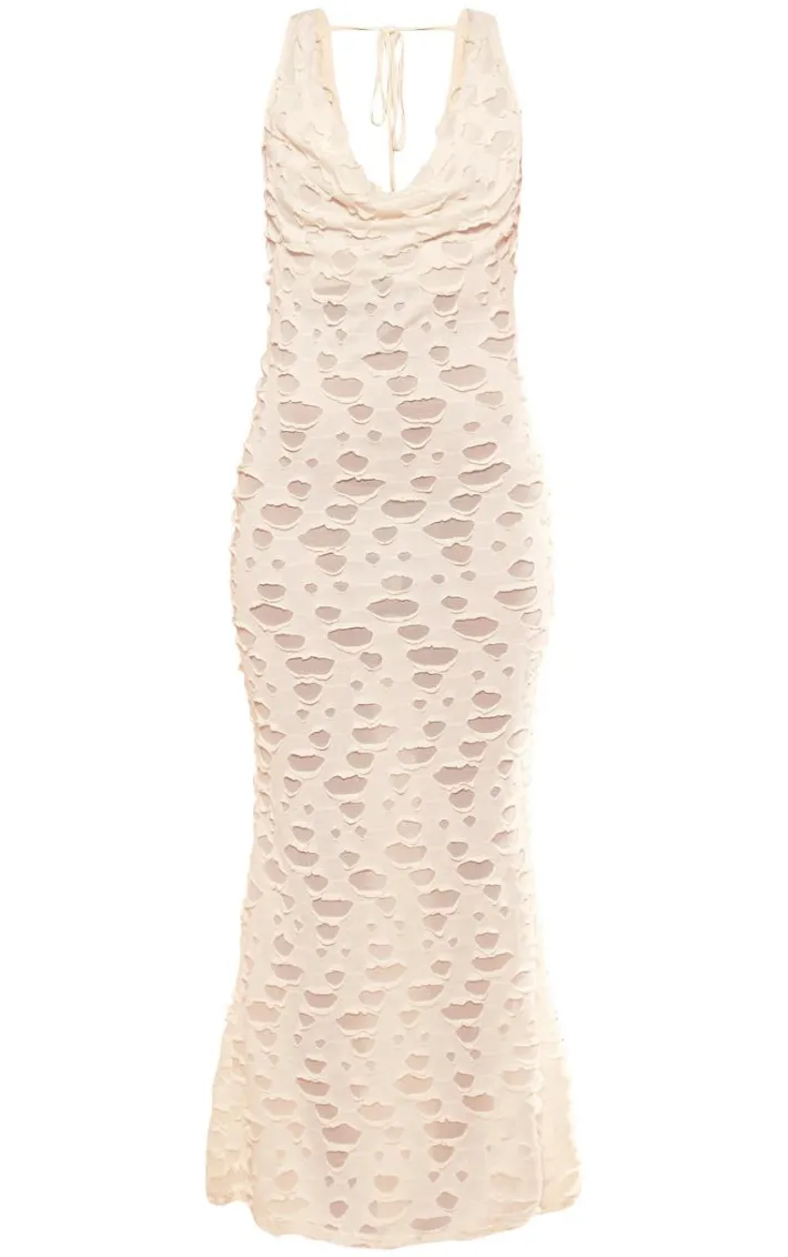 Go for all the luxe vibes this weekend with this dreamy cream woven textured cowl neck maxi dress, you’re sure to be at the center of attention. This dress is made using a cream woven textured material with a cowl neck design and a maxi length, how could you not be in love? Pair this textured dress with your highest heels and gold accessories for a look we just can;t get enough of.