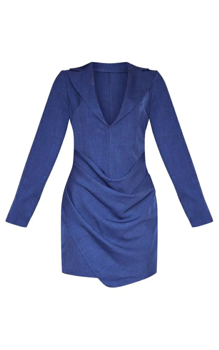 Switch up your new season style game with this dark blue linen look drape detail blazer dress, it is the ultimate must-have for taking your look effortlessly from day to night. This dress includes a dark blue linen look material with a drape detail and a blazer style, it’s a definite yes from us. Pair this blazer dress with clear slip-on heels and gold hoop earrings for an effortlessly chic weekend-ready fit.