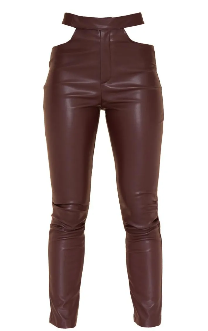 Work this season’s must-have hue into your look with these bottoms. Featuring a dark chocolate faux leather material with a cut-out design and a skinny fit. We are loving this styled with a crop top and strappy heels for a date.