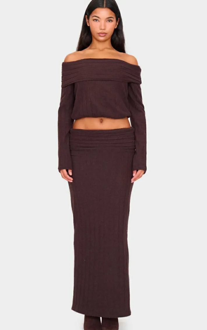 You won’t have to sacrifice comfort for style with this dark chocolate soft rib fold over maxi skirt. Brought to you in a dark chocolate soft rib material with a fold over design and a maxi length, how can you resist? Pair this maxi skirt with the matching top and heeled boots for a simple yet chic look like no other.