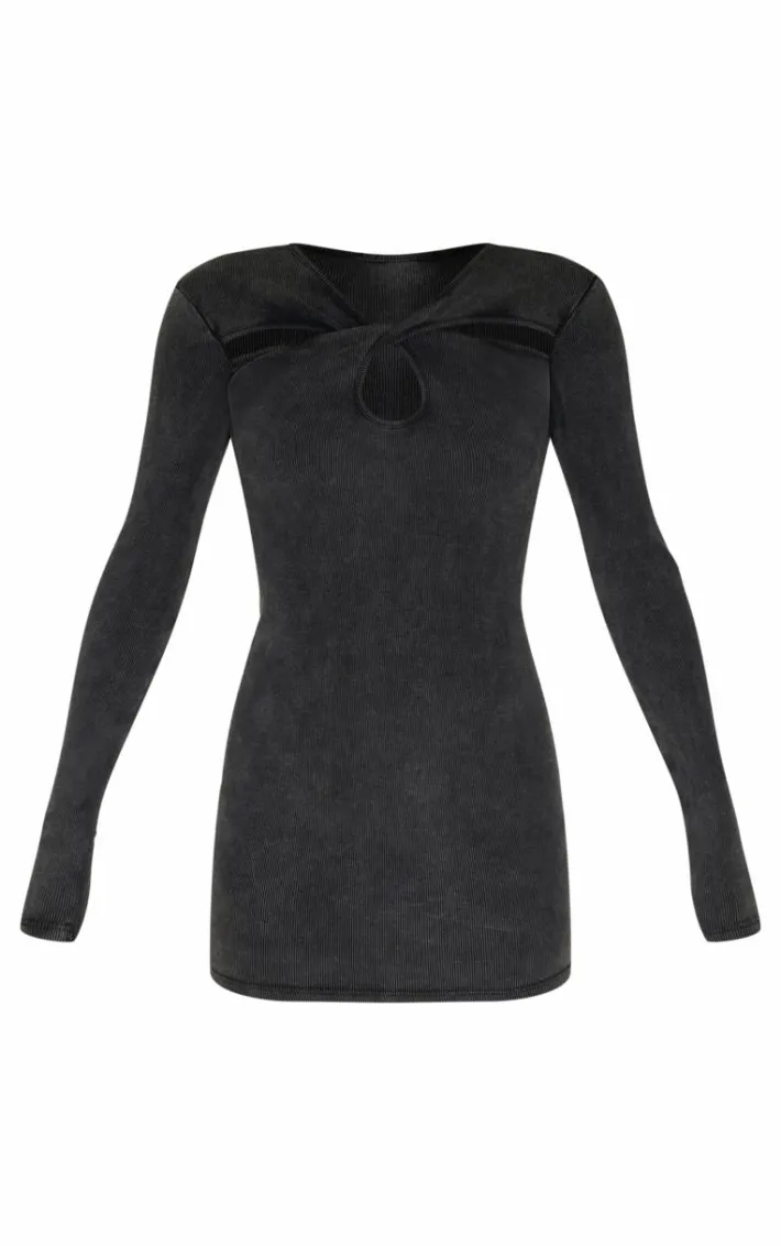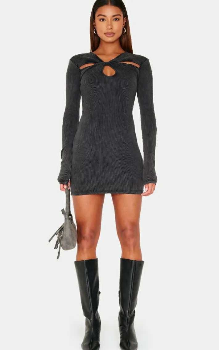 Keep it chic with this dark grey acid wash cut out long sleeve bodycon dress. Brought to you in a dark grey acid wash material with a cut out design and a long sleeve fit, what more could you want? This bodycon dress pairs perfectly with your go-to heels and accessories for a fool proof finish like no other.