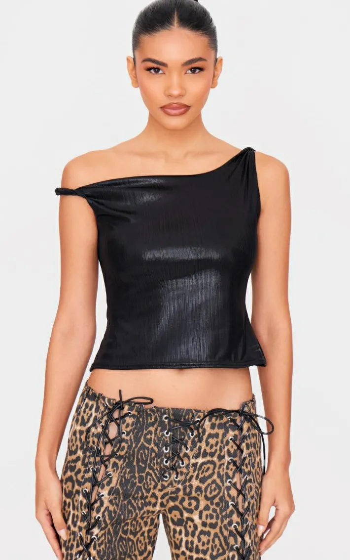 Instantly elevate your look with this dark grey metallic textured twist shoulder long top. Brought to you in a dark grey metallic textured material with a twist shoulder design and a longline fit, how can you resist? Style this long top with statement pants and heels for a look that is perfect for weekend styling.