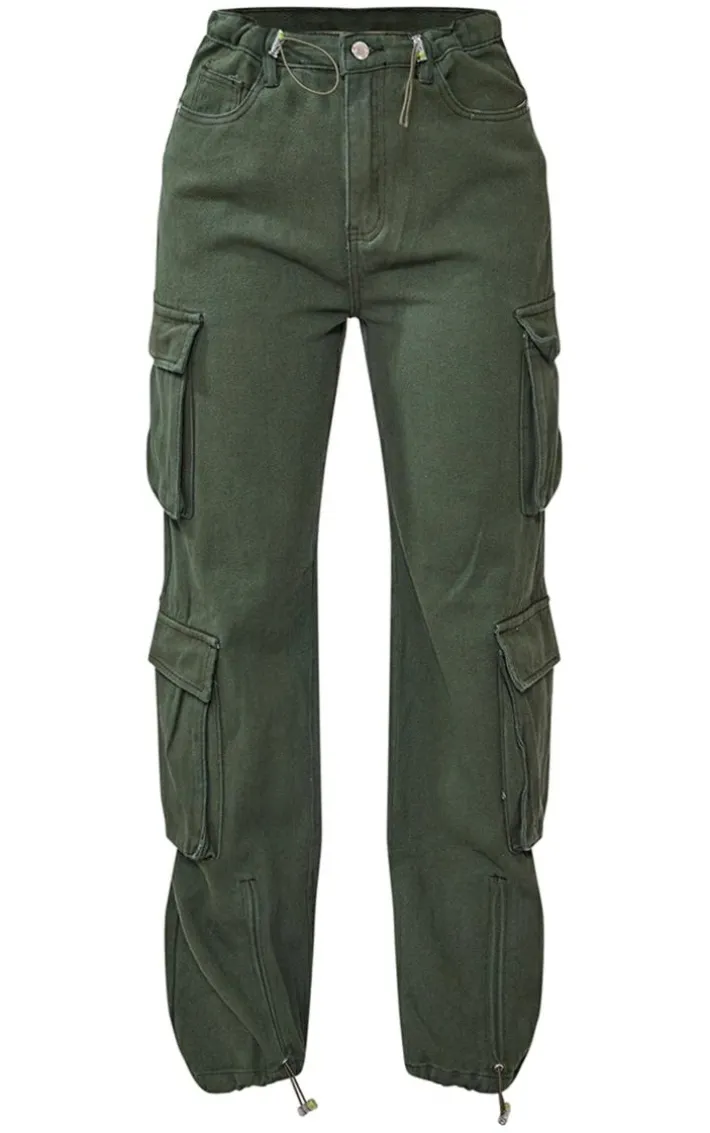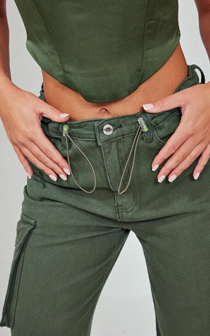 Take your new season wardrobe to the next level with these dark khaki cargo pocket toggle hem jeans. Brought to you in a dark khaki hue material with pocket detailing and a cargo style, how could you resist? These jeans are everything you need for your AM to PM styling doll. Team effortlessly with a corset top, heels and simple accessories for an everyday look like no other.
