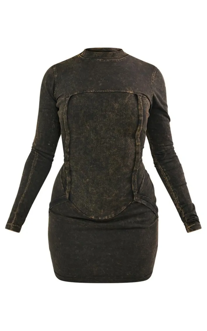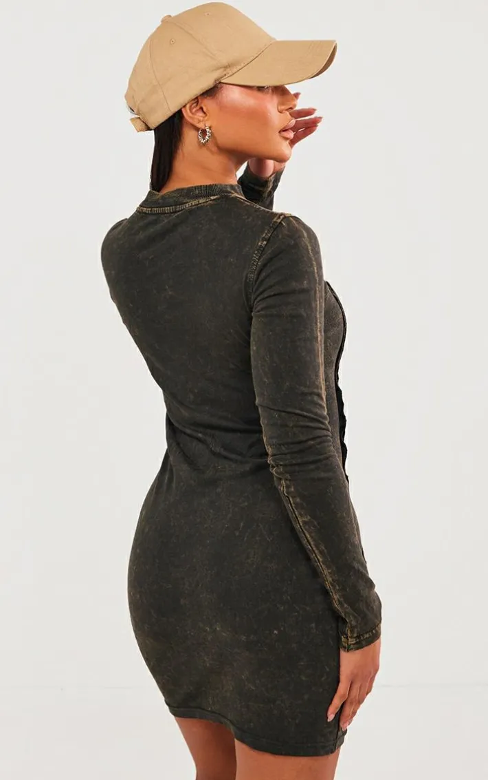 Keep it effortlessly chic with this dark khaki washed rib detail long sleeve bodycon dress. Brought to you in a dark khaki washed material with a rib detail and a long sleeve fit, what more could you want? Its bodycon fit is the perfect addition to your weekend wardrobe. Team with a hat and your fave accessories to finish off the look.