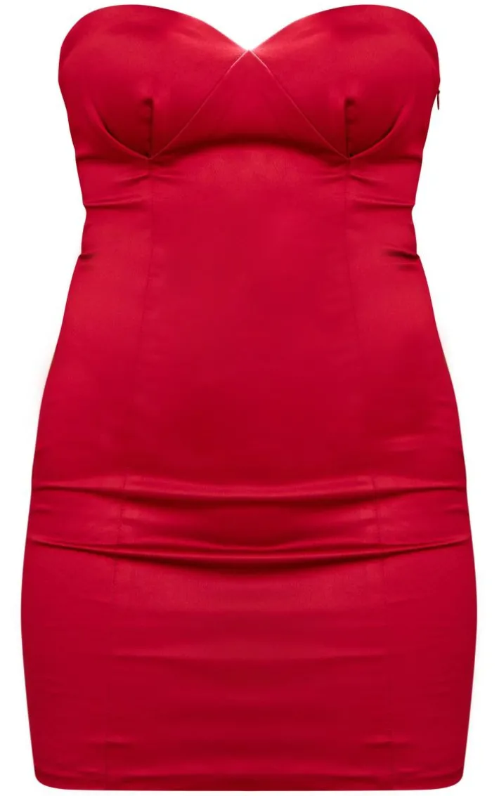 You are guaranteed to make a serious style statement in this dark red satin bandeau cup detail mini dress. Brought to you in a dark red hue satin material with a bandeau neckline, cup detailing and a flattering mini fit, how can you not fall in love? Style this mini dress with tights and heels for a chic occasion look or why not wear with knee length boots and a sweater for more off an effortless vibe.