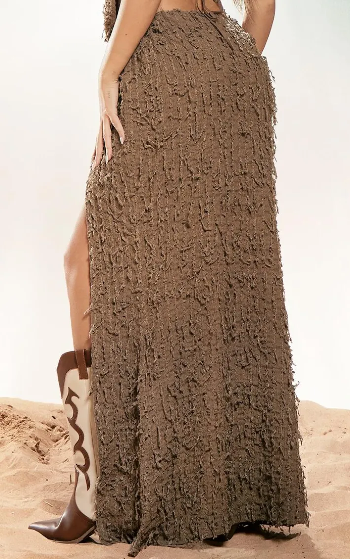 When the weekend calls, so does this dark taupe distressed side split maxi skirt. Brought to you in a dark taupe material with a distressed side, what’s not to love ? This maxi skirt has a side split adding all the edge to your outfit of the day. Team with your fave accessories and the matching top to finish off the look we are loving.