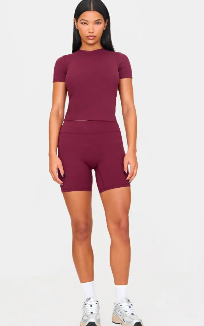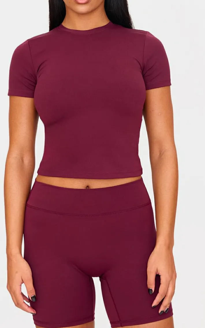 Take a chance on this deep burgundy sculpt longline short sleeve gym top for a look you won’t regret. Brought to you in a seasonal deep burgundy shade, with a flattering sculpt design and longline fit, how can you say no? Team with the matching shorts and pair of sneakers for a look like no other.