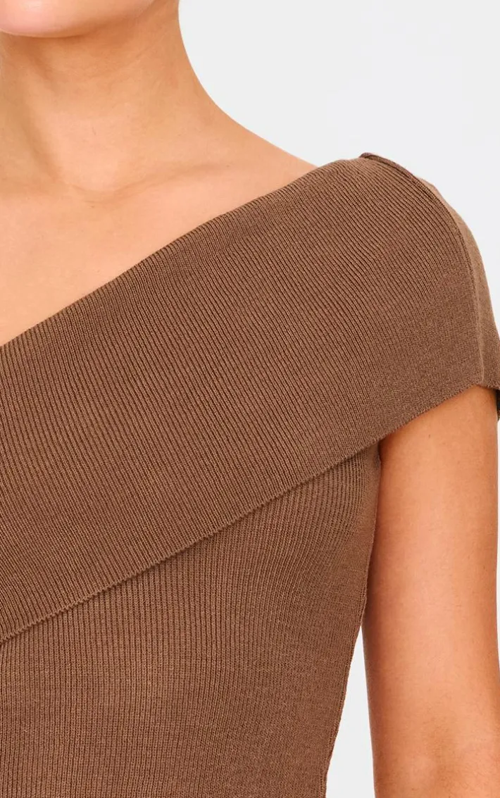Take your knitwear to new heights with this deep taupe soft rib one shoulder fold over crop top. Brought to you in a deep taupe soft rib knit material with a one shoulder design, fold over detailing and a cropped fit, how can you say no? Style this crop top with a mini skirt and knee length boots for a look we’re loving right now.