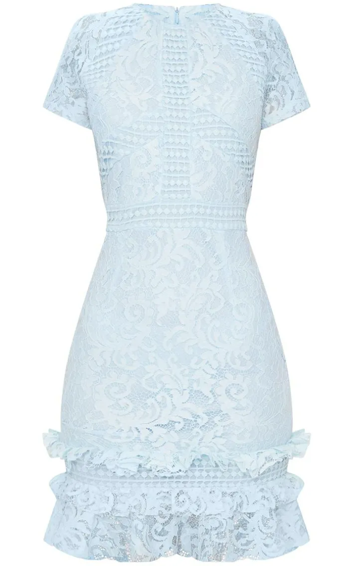 Channel a fiercely feminine fit with this dusty blue dress that is perfect for dressing up or down. Featuring a dusty blue material, with a frill hem, lace detailing and a figure-flattering bodycon fit, what’s not to love? This frill hem mini dress is sure to have you looking and feeling confident no matter what the occasion doll. Style with strappy heels and statement earrings for a look that will steal all the stares.
