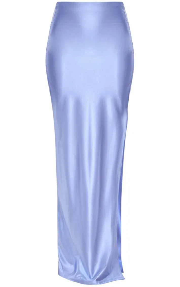 Add a touch of luxe into your new season wardrobe with this dusty blue stretch satin split side maxi skirt, it is perfect for your next upcoming occasion and beyond. This skirt features a dusty blue stretch satin material with a split side design and a maxi length, we’re seriously obsessed. Pair with a corset top, heels and hoop earrings for a look everyone will want.