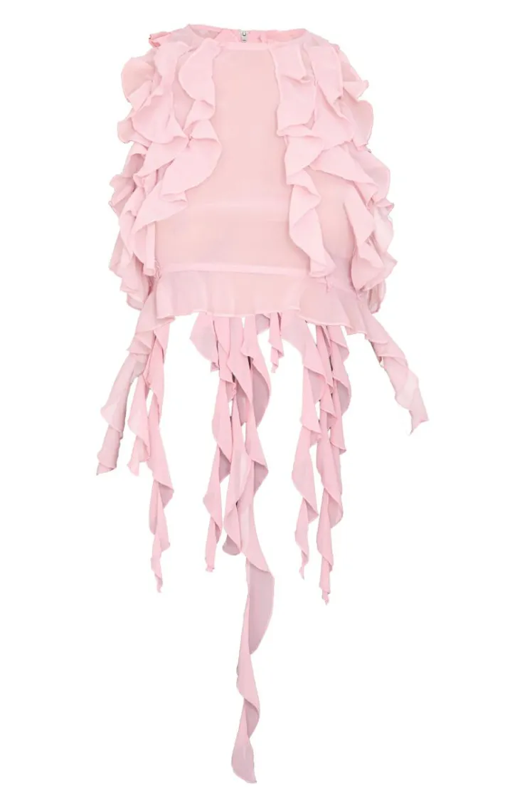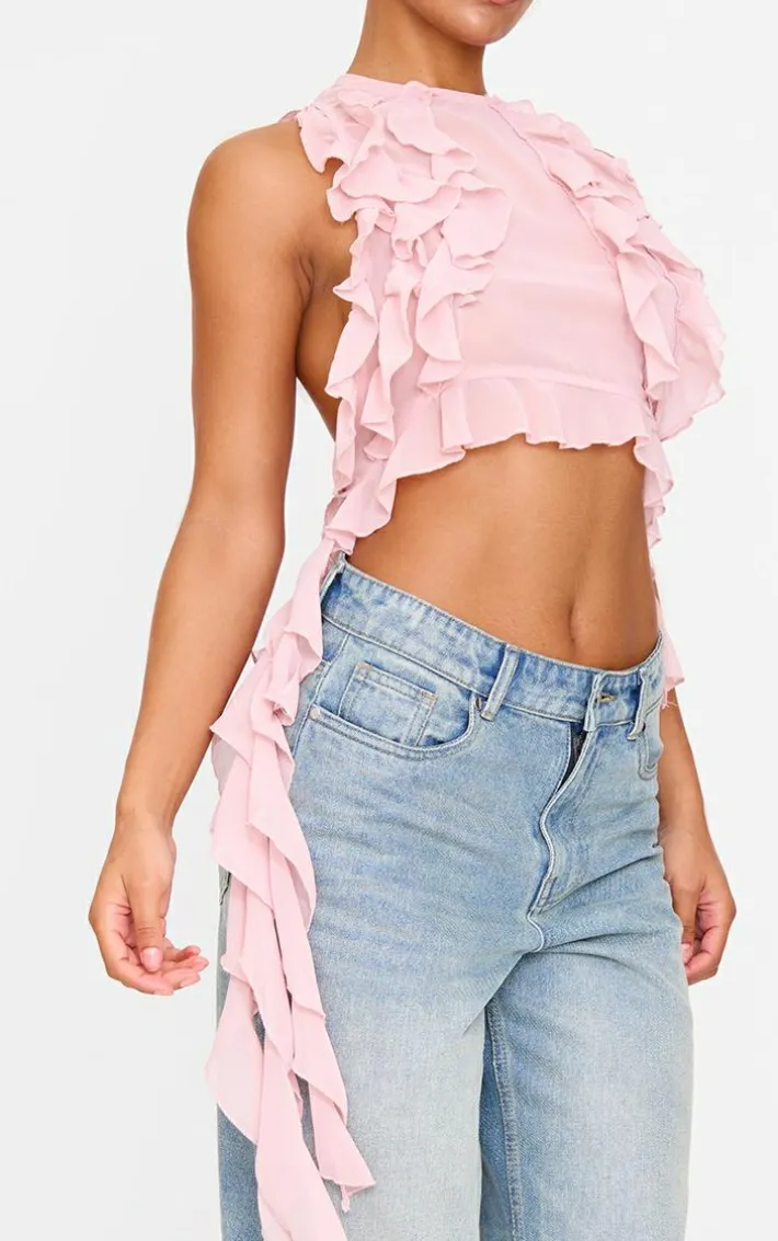 We’re crushing on this dusty pink ruffled train crop top. Brought to you in a dreamy dusty pink shade, with a luxe ruffled train design and cropped fit, you’ll be the best dressed at every occasion. Style with some wide leg jeans and your fave heels to really make an impact.