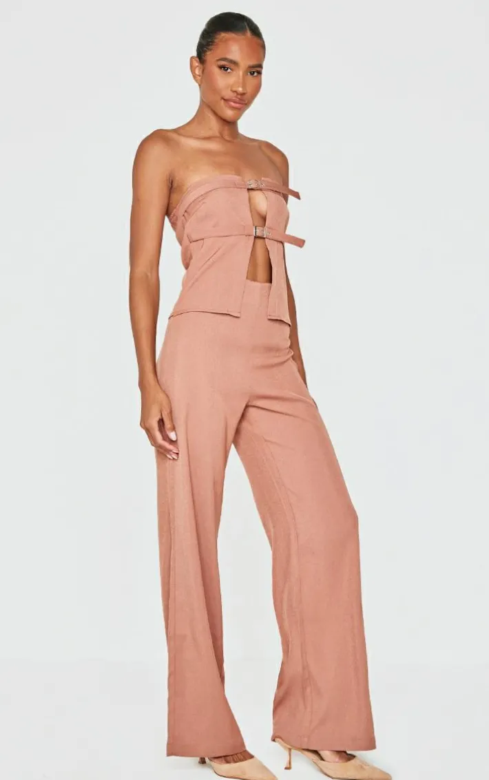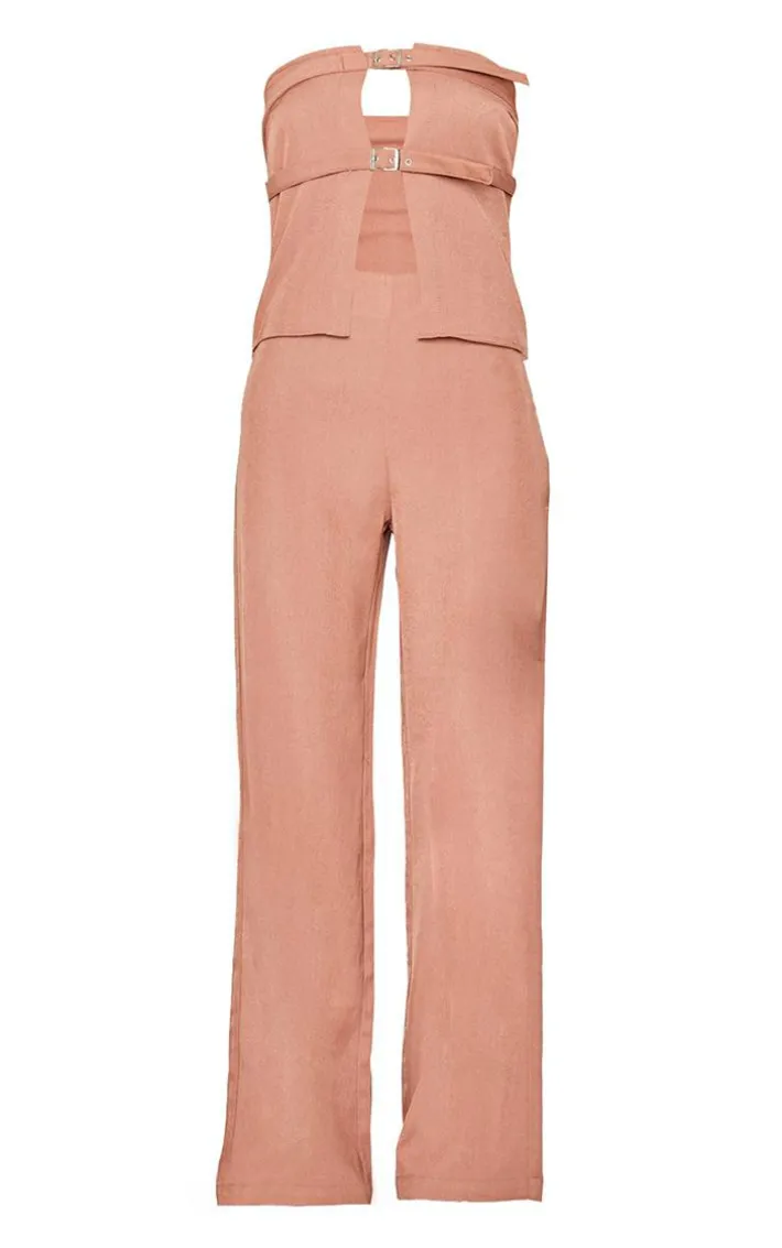 This dusty pink tailored woven thin belt detail bandeau jumpsuit is here to solve all of your ‘what to wear’ dilemmas this weekend. Brought to you in a dusty pink hue woven material with a bandeau neckline and thin belt detailing, how can you resist? Style this tailored jumpsuit with heels and simple gold accessories to complete the look we’re loving.