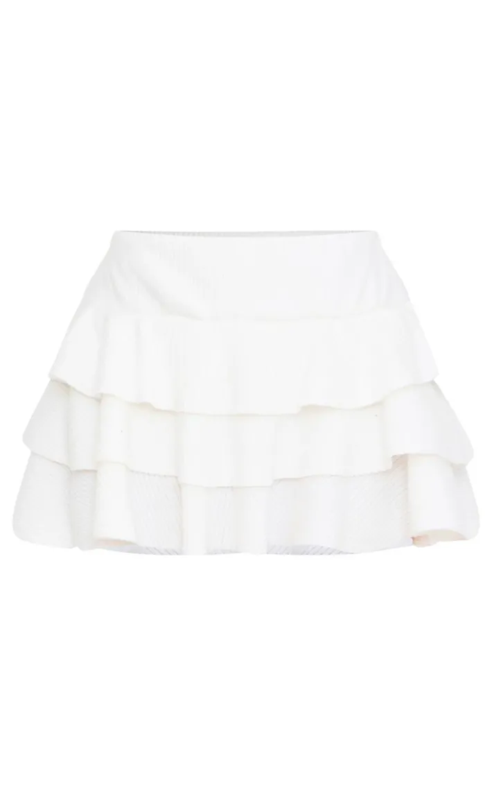 Make new season styling look effortlessly chic in this ecru rib rara mini skirt. Brought to you in an ecru hue brushed rib material with a rara style and a mini length, how can you resist? Style this mini skirt with a top, sneakers and a shoulder bag for an effortless everyday look that won’t miss this season.