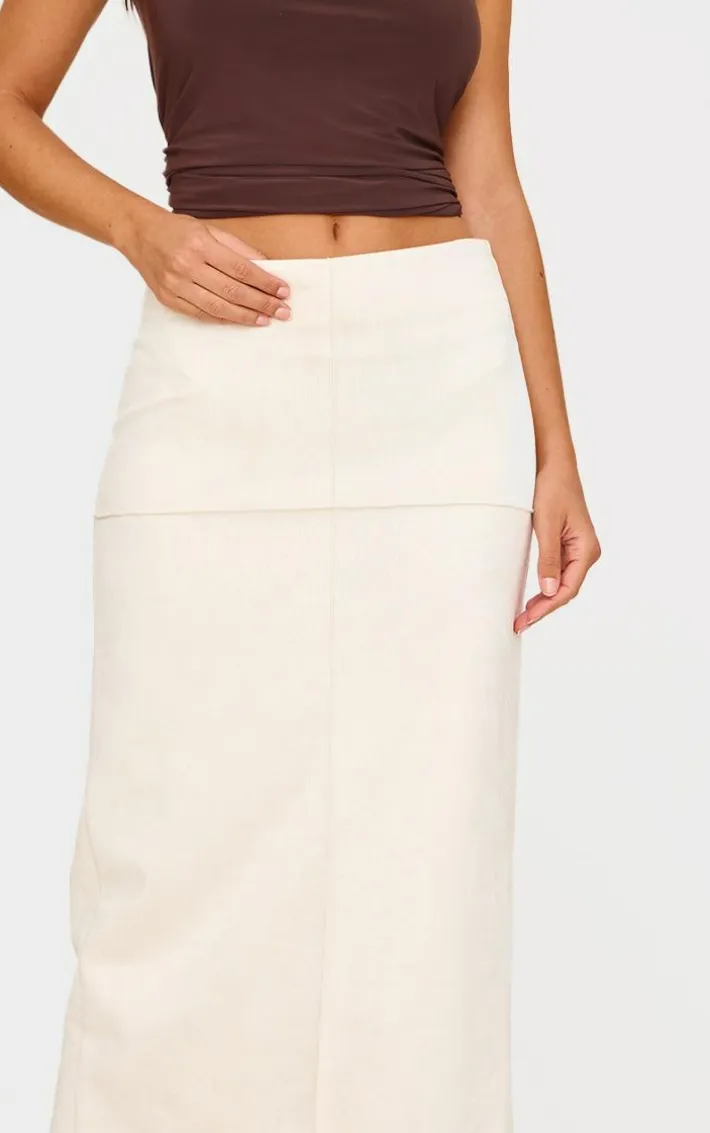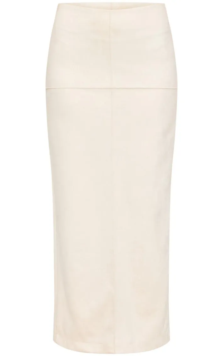 Make this ecru faux suede seam detail column maxi skirt a staple in your new season wardrobe. Brought to you in a ecru hue faux suede material with seam detail and a flattering maxi length, what more could you want? Style this faux suede skirt with a top, heels and simple gold accessories for a look that is sure to make heads turn.