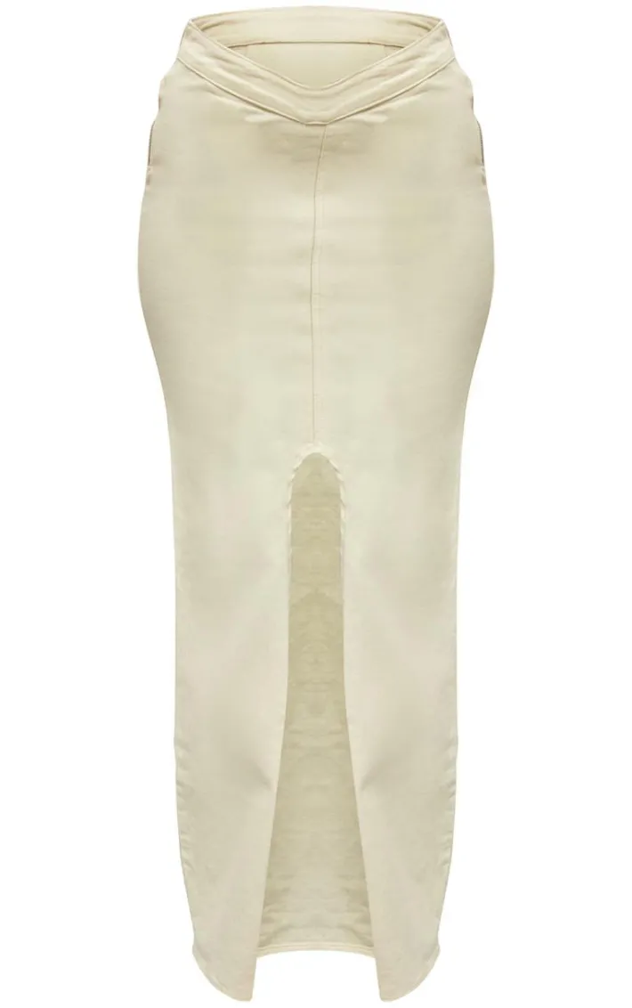 Take any look to new heights with this ecru scoop front split denim maxi skirt. Brought to you in an ecru denim material with a scoop front and a split detail, what more could you want? This unreal maxi skirt is perfect for those day to night looks and beyond. Team with a pair of slip on heels and your fave accessories to elevate the look even further. It’s a yes from us.