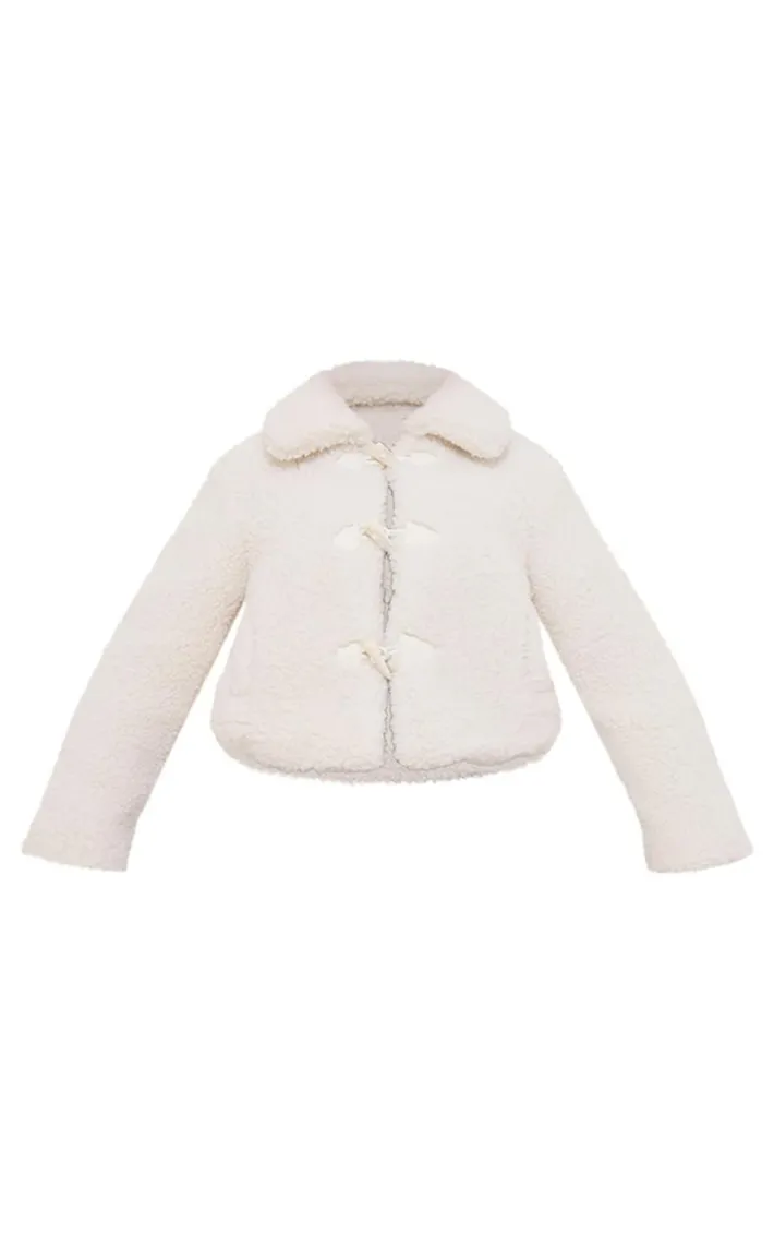 Elevate your outfit of the day with this ecru toggle detail faux fur jacket. Brought to you in an ecru hue faux fur material with a toggle detail, this jacket is a must have. How can you resist? Style with a brown hue top, mini skirt and slip on heels for an on trend finish we’re loving this season.