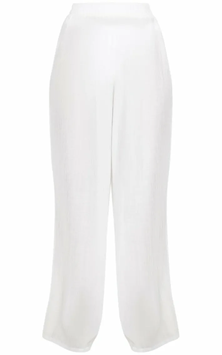 These wide-leg bottoms are perfect for lazy beach days and beyond. Featuring an ecru hue material with a high waistline and a wide-leg fit, team them with a simple white bikini and heeled wedges for a look we’re loving.