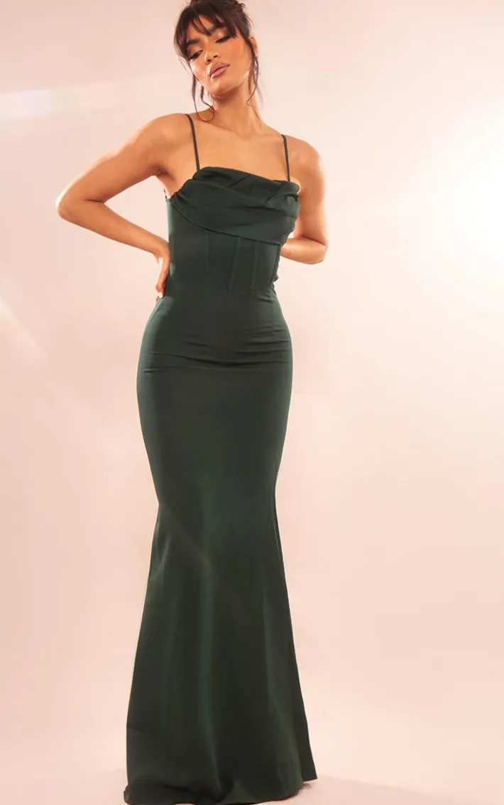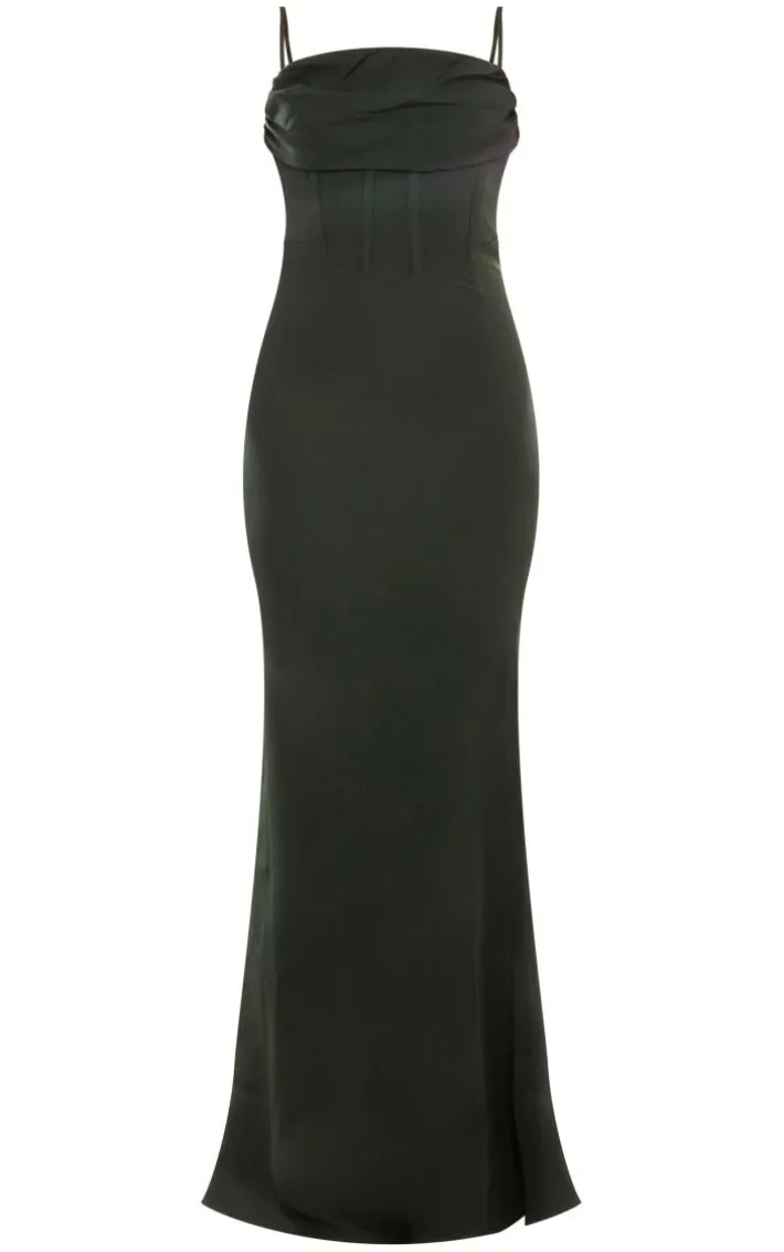We are obsessing over this absolutely unreal dress. Featuring an emerald green material with a corset design and a zip fastening. Style with your fave heels and a clutch bag for a look that is perfect for those special events.