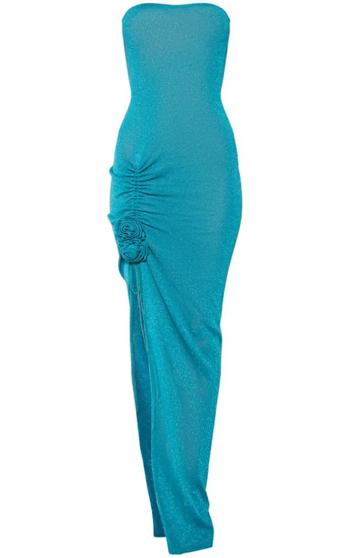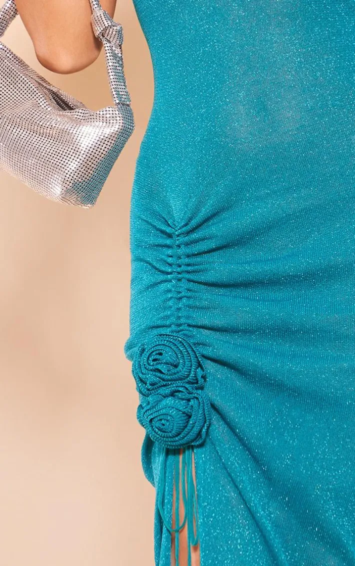 Be the ultimate show-stopper this season with this emerald green glitter sheer knitted flower embellished dress, you’re sure to be ready for your next big event. This dress includes an emerald green sheer knitted glitter material with flower detailing and a figure-flattering fit. Style with your highest heels and a mini bag for a flawless finish.