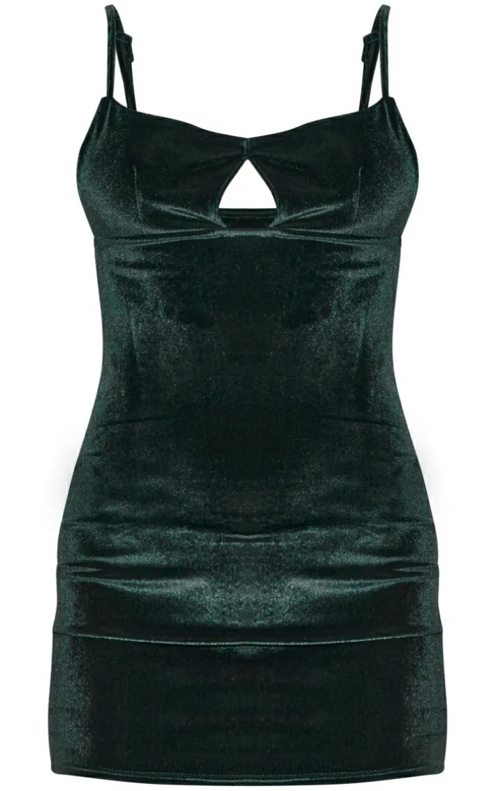 Bring all the luxe velvet feels to your next occasion look with this emerald green velvet cut out detail strappy bodycon dress. Made from an emerald green velvet material with a cut out design, thin straps and a figure-worshipping bodycon fit, how can you say no? Style this bodycon dress with heels, a mini bag and silver accessories for a look they won’t be able to take their eyes off.
