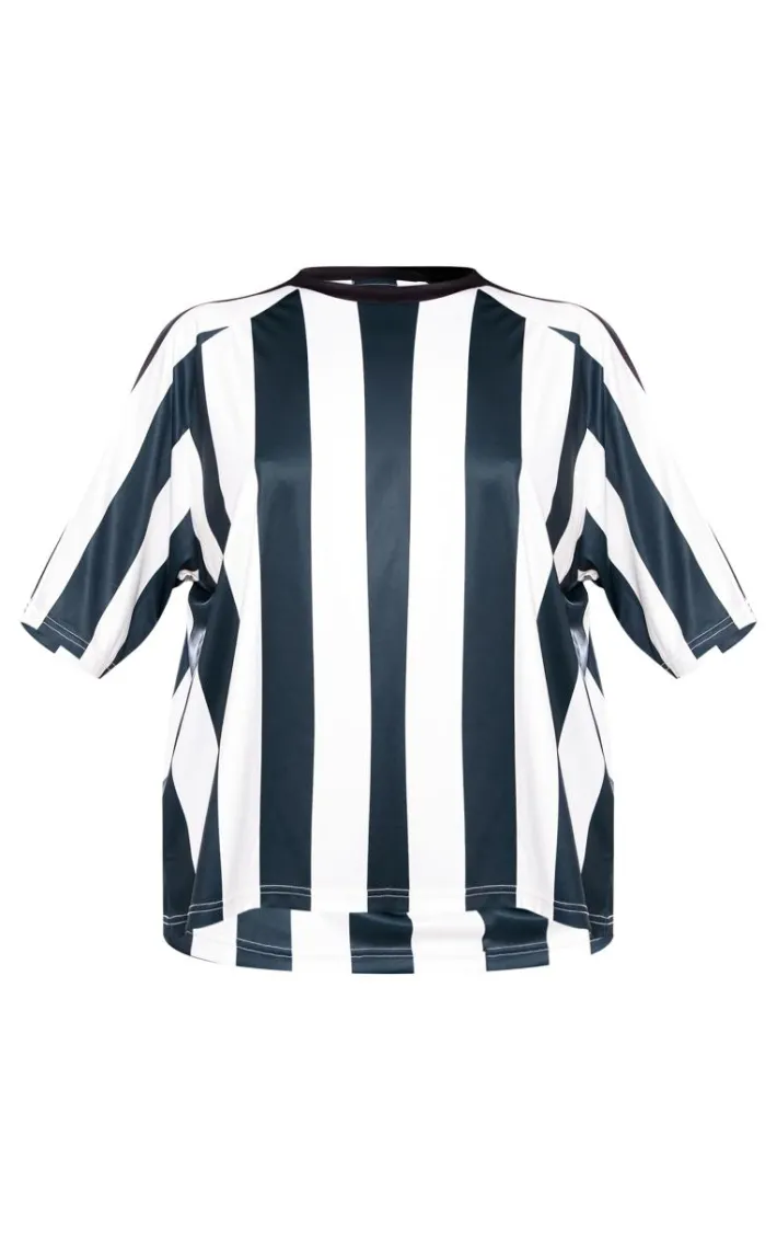 Swich up your style game for the new season with this forest green striped oversized football t-shirt. Brought to you in a forest green material with a striped design and and oversized fit, what more could you want? Style this football shirt with comfy shorts and chunky boots for a look that will earn you some serious style points.