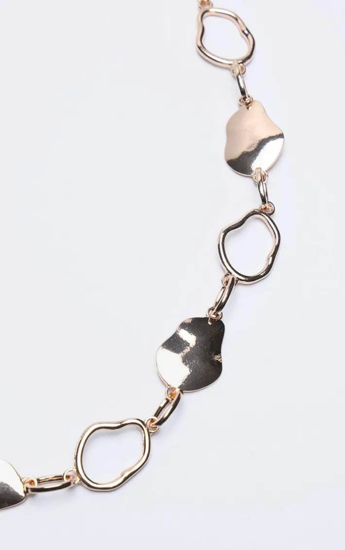 Switch up your accessory style game with this gold abstract petal link belly chain. Brought to you in a gold material with an abstract petal link design, how can you resist? Style this belly chain with your fave wardrobe pieces to instantly elevate any look.