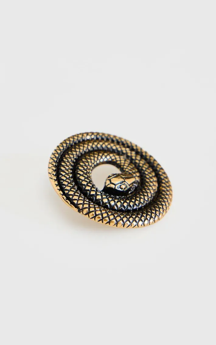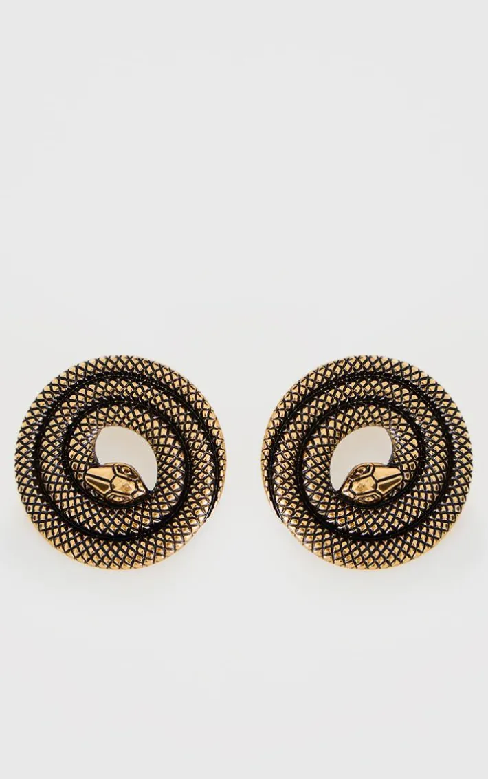 Take your outfit of the day to new heights with these gold burnished spiral snake statement earrings. Made from a gold burnished material with a spiral snake design, how can you resist? Style these statement earrings with your look for a fierce finishing touch.