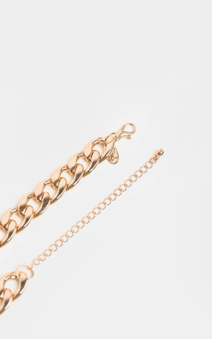 We are obsessed with this necklace to elevate any look. Featuring a gold chunky chain material with a flat link design, we are obsessed. Team this with any look for some extra style points.
