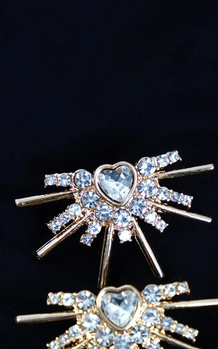 Finish off your glam look in style with these earrings. Featuring a gold hue material with diamante detailing and a star shape, we’re in love.
