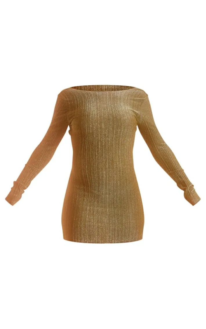 You won’t blend in with this gold glitter plisse cowl low back long sleeve bodycon dress. Brought to you in a gold plisse material with a glitter design, what’s not to love? Its cowl low back detail and long sleeve fit, what more could you want ? Team this unreal bodycon dress with a pair of mule heels and your go to mini bag for an effortlessly chic look everyone is obsessing over.
