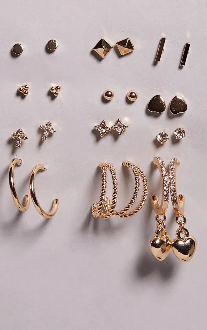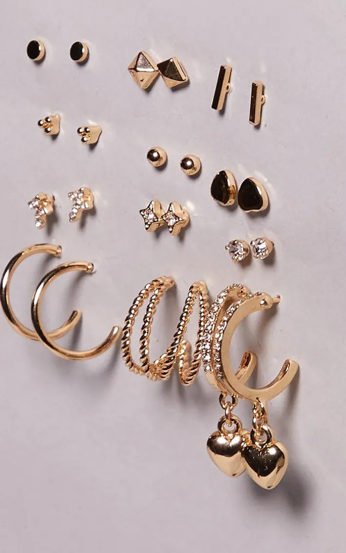 Take your accessory collection to a whole new level with this gold heart stud and hoop multipack. This set includes 12 pairs of stud earrings all in a gold material with varying heart and hoop designs, what more could you want? Simply pick your fave pair of gold earrings and add them to your outfit of the day to add a subtle touch of luxe to any look, we just can’t get enough.