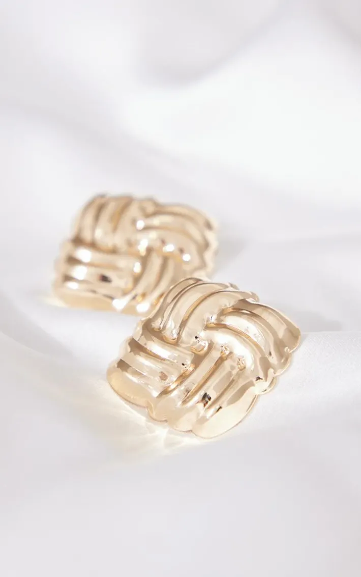 Take your outfit of the day to the next level with these earrings. Featuring a gold hue with a large quilted design and a stud fastening, we are obsessed.