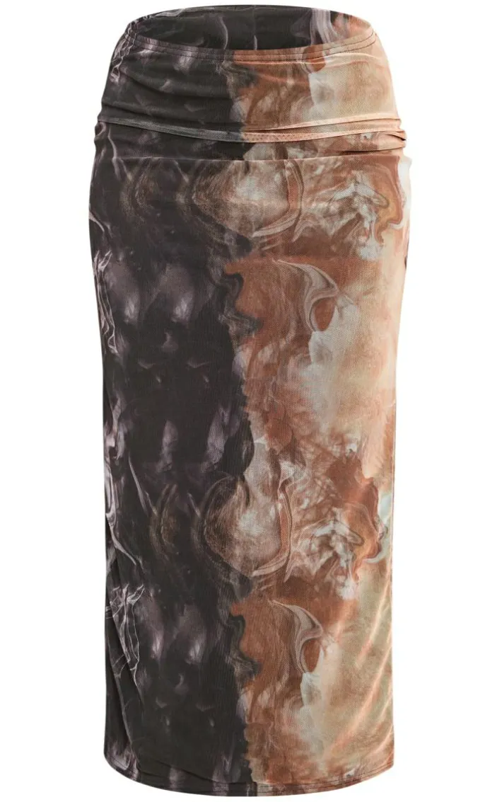 Get your glam on with this gold marble printed lined mesh maxi skirt. Made from a gold mesh material with a marble printed design, you’re sure to have all eyes on you. When the weekend calls, so does this maxi skirt. With a lined detail, we are obsessed. So what are you waiting for? Shop the look and opt for some clear heels and a cropped tee. It’s a yes from us.
