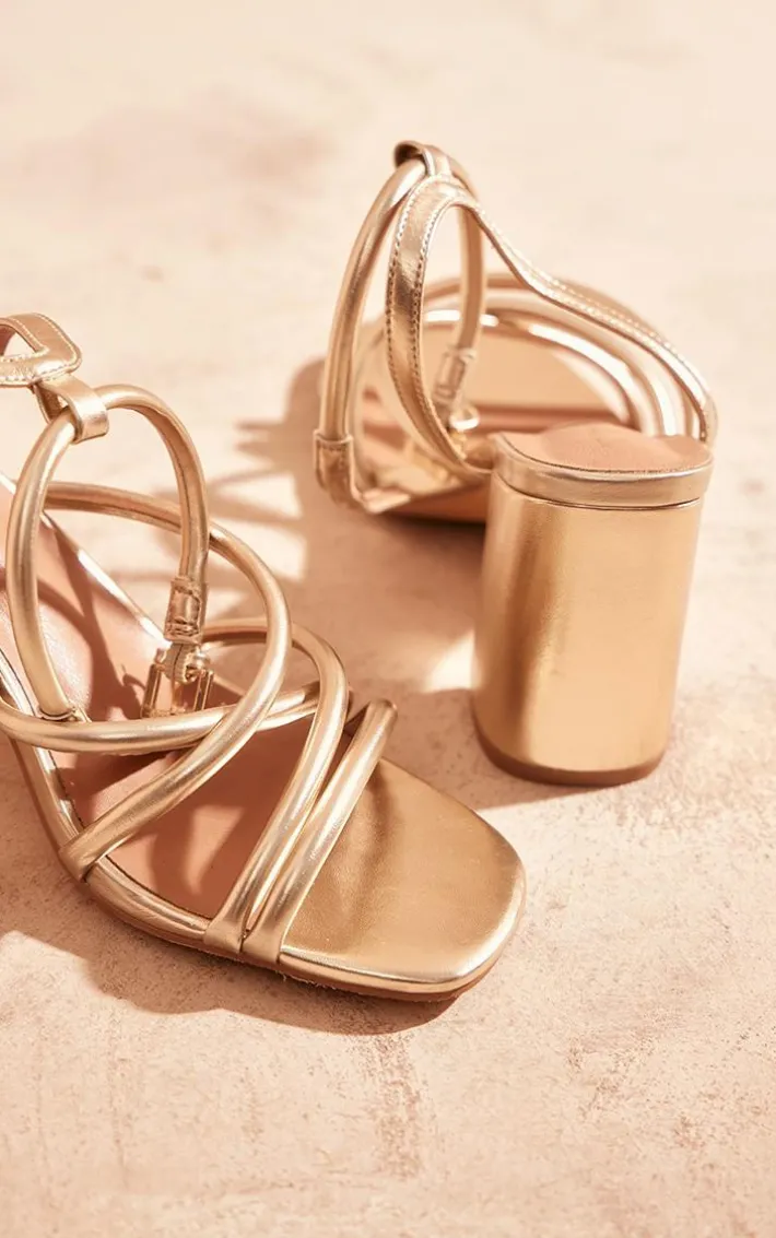 Make a statement this season with these gold metallic PU round toe mutli strap block heeled sandals. Brought to you in a gold metallic PU material with a round toe design and a multi strap detail, what’s not to love? These block heeled sandals are perfect for those date nights. So what are you waiting for? Pair with your go-to look to turn heads.