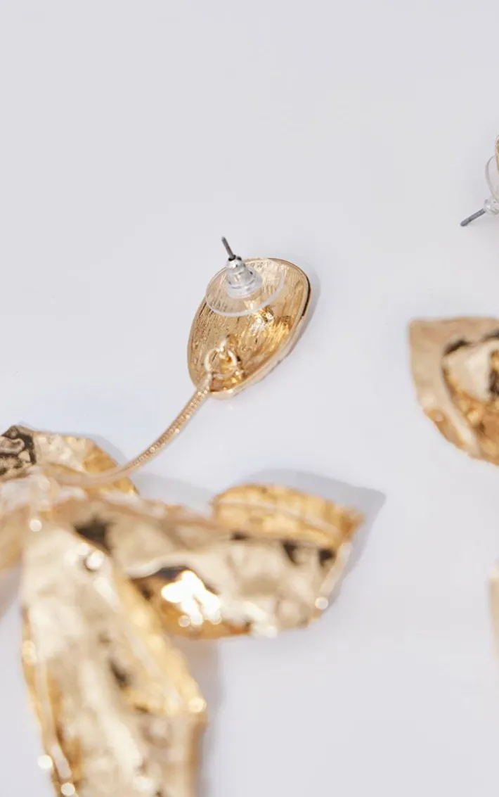 Amp up your accessory wardrobe with this gold molten flower drop statement earrings. These earrings are brought to you in a gold molten material with a statement floral drop, what’s not to love? Pair these earrings with your outfit of the day for a look like no other.