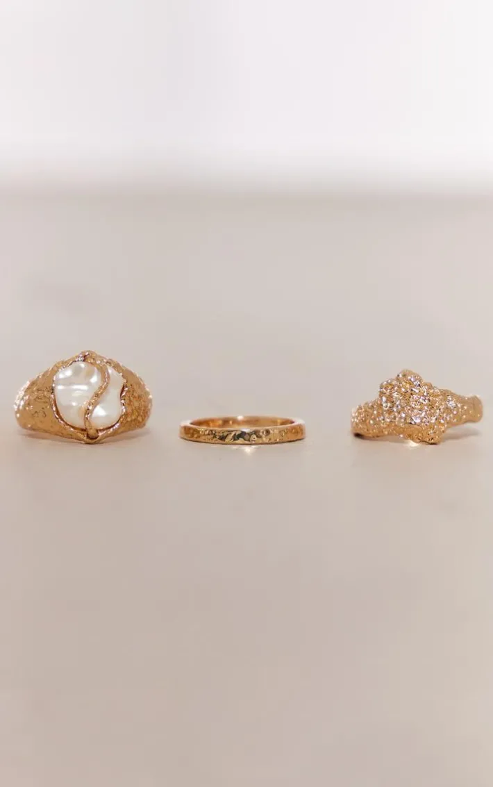 You can never have too much jewelry so add to your collection with these gold molten set pearl multipack rings. This set includes 3 gold molten rings with pearl detailing, how can you not fall in love? Style these gold rings with your outfit of the day for a luxe finishing touch.