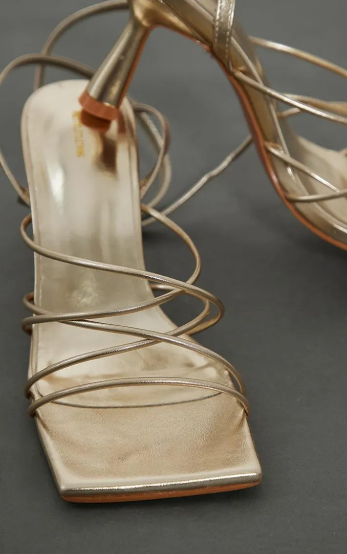 Finish off your weekend look with these dreamy heels. Featuring a gold PU material with a square toe, a cross over strap and a mid heel, we can’t get enough.