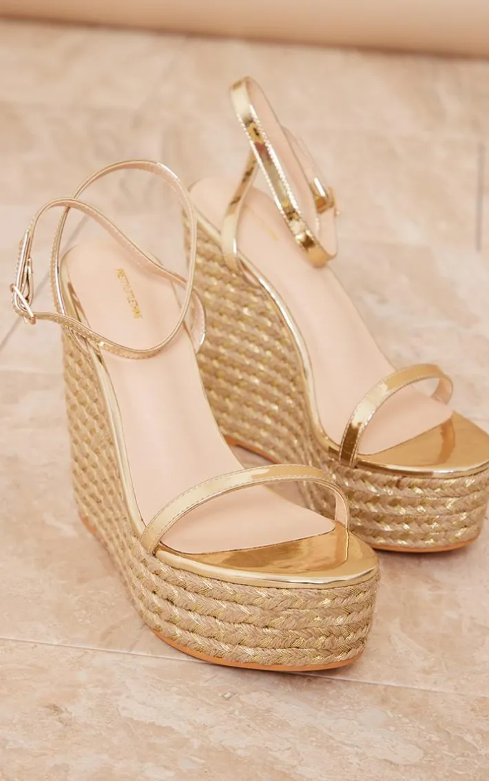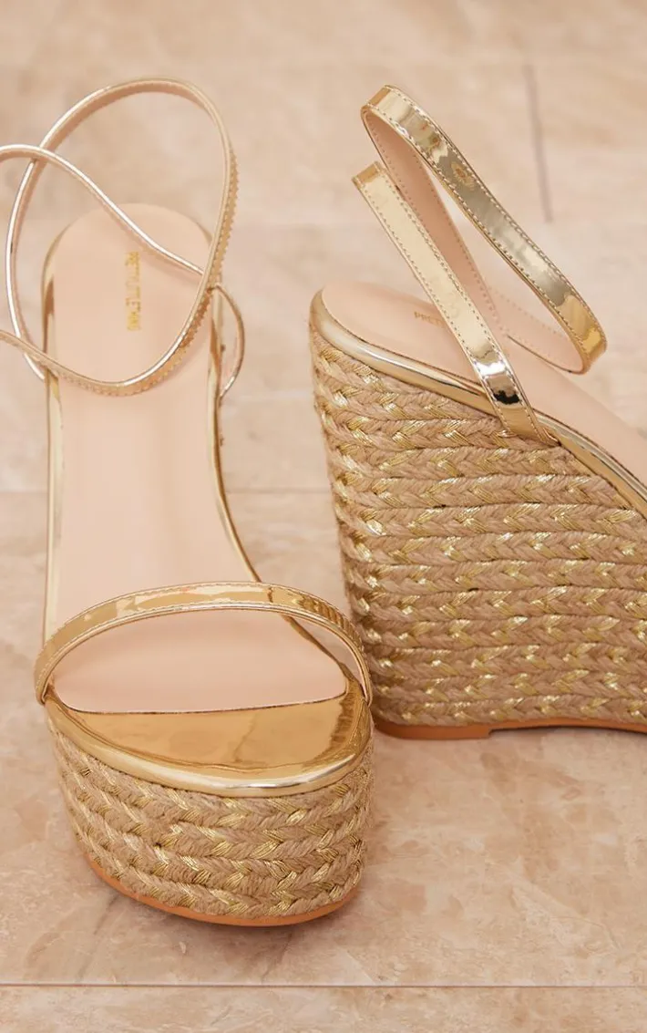 Wedges are a must-have this season and we are obsessing over these. Featuring a gold PU material with a metallic strap and a high heel, how could you say no?