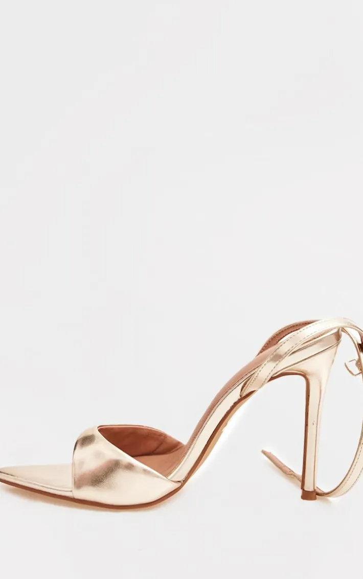 Stay in style this season with these gold PU point toe high stiletto heeled sandals. Brought to you in a gold PU material with a point toe design and high stiletto heel, these sandals are everything you need and more. Style with a chic outfit for an elevated that will earn you all the compliments.