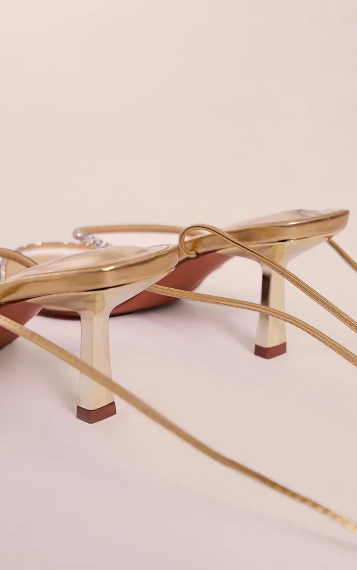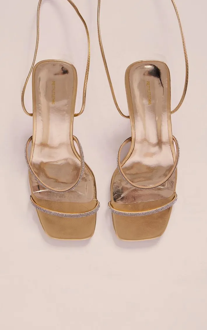 When your weekend look is in need of a luxe finishing touch, we’ve got you covered with these gold PU square toe double diamante strap lace up heeled sandals. Brought to you in a gold hue PU material with a square toe design, a lace up fastening and diamante detailing for that extra added glam, we are obsessed. Style these gold heeled sandals seamlessly with your weekend ‘fit to instantly elevate any look.