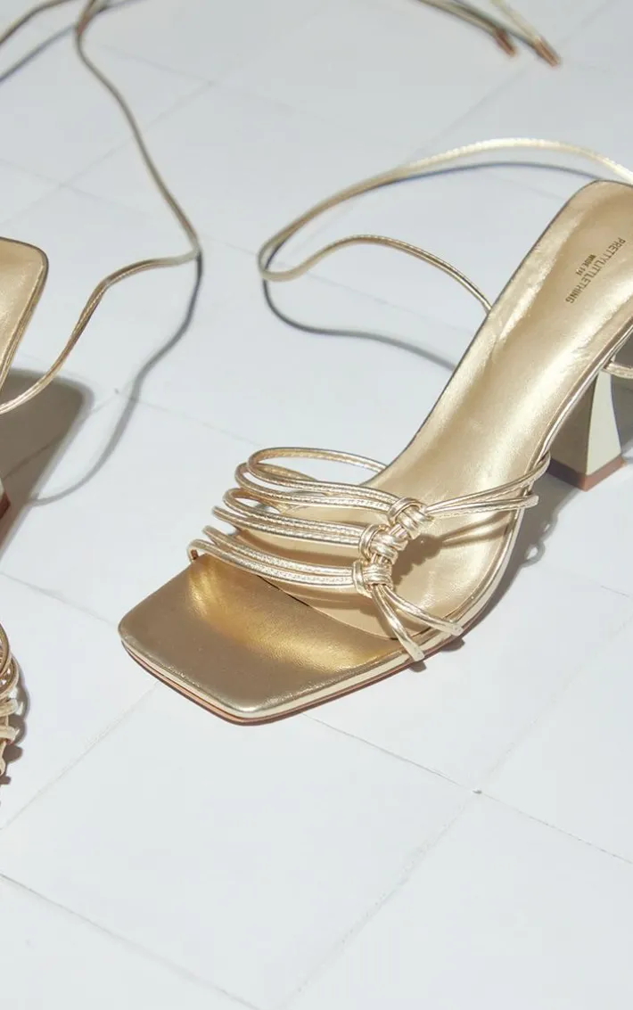 Add some glam vibes to your outfit of the day with these gold Pu square toe side knot detail mid flared heeled sandals. These sandals are made from a gold Pu material with a square toe design adding a touch of luxe to your look. With a side knot detail and a mid flared heel, what more could you want ? We are seriously obsessed.